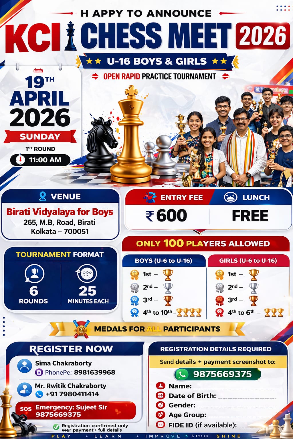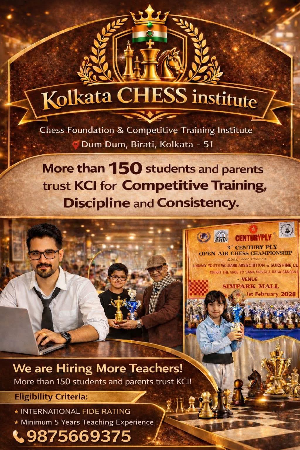 “As a chess player and coach for more than two decades, I’ve seen how this beautiful game can transform young minds. Kolkata Chess Institute was founded with the goal of helping children not only become strong chess players, but also confident, disciplined and thoughtful individuals.