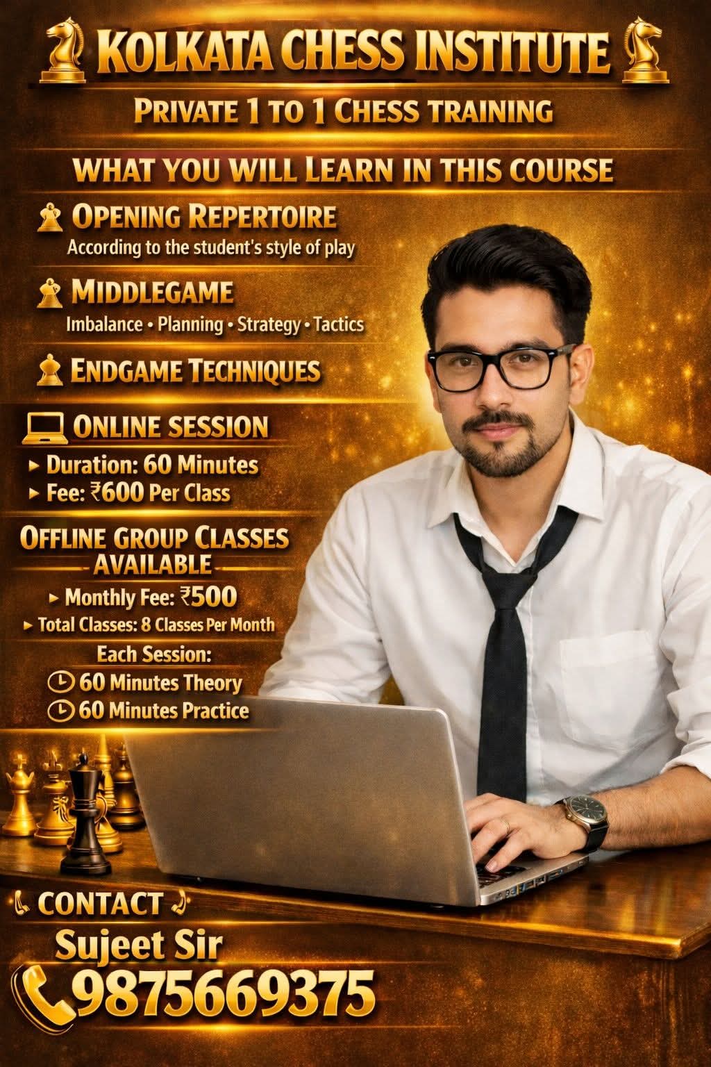 Led by International FIDE-rated coaches and founded by Sujeet Sir (20+ years of coaching experience), Kolkata Chess Institute offers chess classes both online and offline.